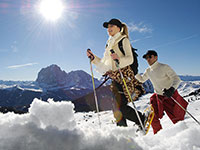 Und schließlich ist der Winter als Jahreszeit auch zum Wandern geeignet. Sei es als Wanderung auf winterlich verschneiten Wanderwegen oder als erlebnisreiche Ausflugstour beim gemeinsamen Schneeschuhwandern. Im Hotel Cavallino Bianco in St. Ulrich, sind die Urlaubsgäste bei Simon und Gunthi, dem hauseigenen Betreuerteam, bestens aufgehoben. Bei der Planung ihrer Ski-Touren berücksichtigen Simon und Gunthi die unterschiedlichsten Schwierigkeitsgrade. Gleichzeitig laden sie die Erwachsenen, die Kinder oder auch die ganze Familie zur herrlichen Ausflügen in die verschneite Bergwelt von Gröden ein. Ein ganz besonderes Erlebnis sind die regelmäßig stattfindenden Schneewanderungen. Vom Hotel Cavallino Bianco in St. Ulrich aus, wandern Simon und Gunthi mit ihren Gruppen über schneebedeckte Wiesen, entlang verschneiter Wälder und entdecken gemeinsam mit den großen und kleinen Gästen die winterliche Natur von Gröden.
