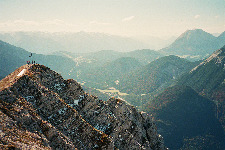 Mittenwald nach Süden verlassen, Wegweiser zur Brunnsteinhütte beachten, den Direktweg mit schneller Aufstiegsmöglichkeit vermeiden (dieser Weg endet an einer Wildbachschlucht und es wird ein Abstieg bis zu einer 100m weiter unten liegenden Querungsmöglichkeit der Schlucht erforderlich). Vom Parkplatz ebenfalls nach Süden marschieren bis eine Gelegenheit kommt die B2 zu überqueren. In den Talweg parallel der B2 gemäß Wegweiser einbiegen und zunächst nur mäßig in einem Bergwald aufsteigen bis eine Schlucht erreicht wird. Jetzt kurz an der Schlucht steiler aufsteigen (Nordseite) und anschließend die Schlucht/den Wildbach überqueren. Jetzt den Aufstieg im Wald südl. parallel zum Wildbachtal in vielen Serpentinen bis zur Brunnsteinhütte fortsetzen. An der Hütte rechts vorbei gehen, bzw. in den nach rechts führenden Bergweg nach der Hütte einbiegen. Bereits an der Brunnsteinhütte ergeben sich gute Blicke ins Tal der Isar, bzw. nach Mittenwald zurück. Der Weg führt nun teils steil in Kehren/Serpentinen durch Latschenkiefergewächse zu einem mit Geröll und Schottersteinen gefüllten Kar. Im Kar weiter bis zum Bergsattel zwischen Kirchl- und Rotwandlspitze an Höhe gewinnen. Im Sattel an einer Wegekreuzung in den nach rechts führenden Bergpfad einbiegen. Über Bergwiesen erreicht man schließlich die Rotwandlspitze. Es ergeben sich gute Rundblicke ins westliche Karwendel, zum Wetterstein- und Estergebirge sowie auf die Berge der Mieminger Kette. Als Tour-Ergänzung kann zusätzlich die in der Nähe liegende Brunnensteinspitze bestiegen werden. Der Abstieg erfolgt auf dem Anstiegsweg. |