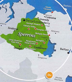 Nördlich der Stadt liegen die Sperrin Mountains, ein beliebtes Wandergebiet.