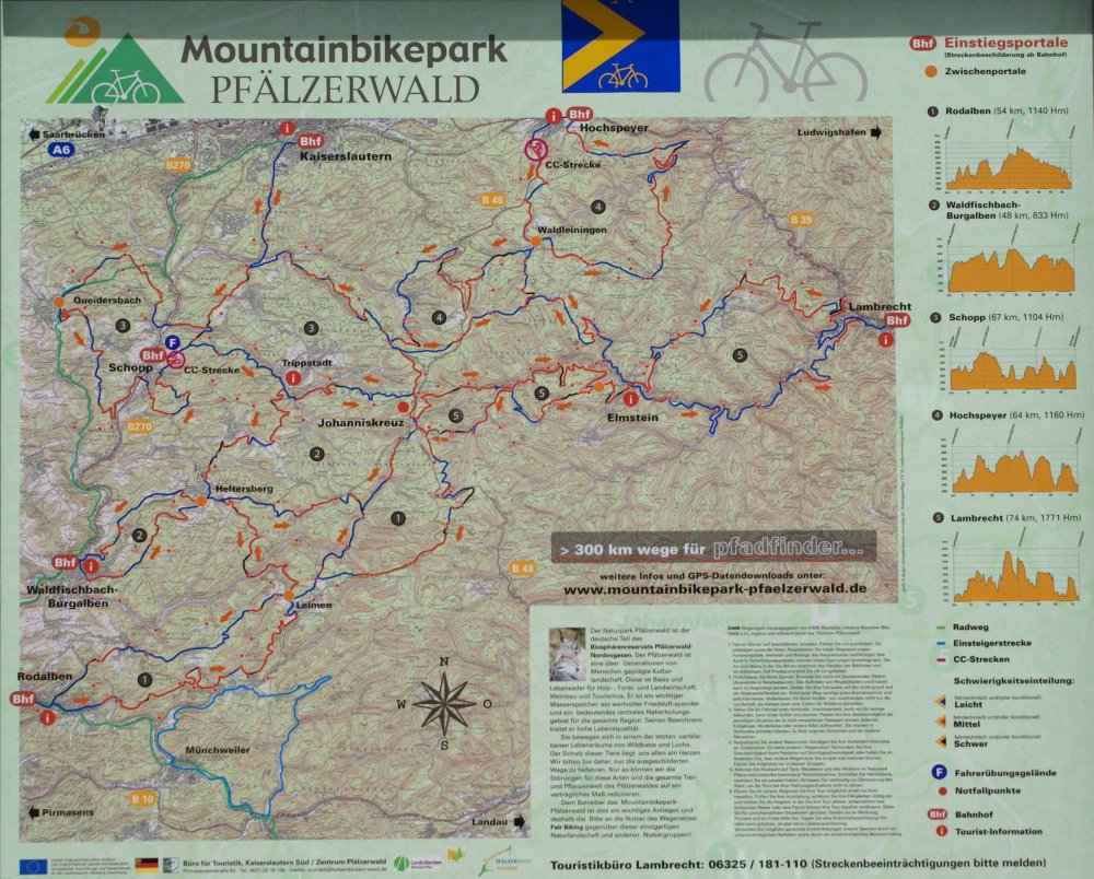 Wie an vielen Bahnhöfen des Pfälzerwaldes beginnen Wanderwege und Mountainbike-Strecken direkt am Bahnhof. Eine Anreise mit öffentlichen Verkehrsmitteln zu den Wanderrouten ist somit problemlos möglich. Für Mountainbiker ist hier sogar eine Fahrrad-Waschanlage geplant. |