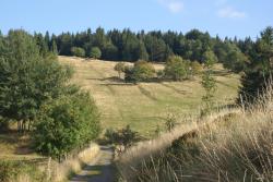 Von der Grenzwiese geht es bergauf zum Trockenberg (807m) und Jagdberg (814m).