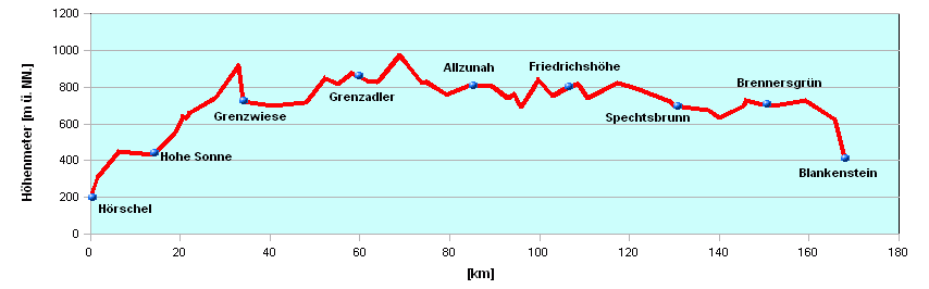 Blankenstein (420m). Der Zielpunkt ist die Selbitzbrücke, die Grenze zu