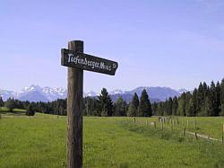Um zum Tiefenberger Moor zu gelangen, gehen Sie den Fußweg am nördlichen Ortsrand Richtung Kierwang und weiter per Fußweg bis nach Dietrichs. In Dietrichs zweigt der Weg rechts ab Richtung Schweineberg/Tiefenberg. Dann können Sie ebenfalls wieder rechts abbiegen um ins romantische Tiefenberger Moor zu gelangen. Zurück führt die wenig befahrene Straße nach Untermühlegg bis Obermühlegg und von dort per Fußweg (rechts ab) wieder nach Bolsterlang. Reine Gehzeit ca. 2 h – ca. 6,5 km