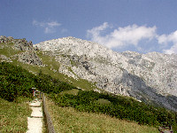 hinauf zu den Almlandschaften und Gipfeln des Wetterstein- und Karwendelgebirges.